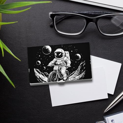 Cute Astronaut Rides on Bicycle Business Card Holder Alloy Multi Wallet Credit Card ID Pocket Name Case 3