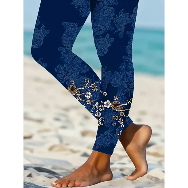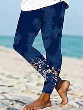 More information about Women's Leggings Vacation Vintage Fashion Ankle-Length High Waist Floral Graphic Paisley Printing Soft Breathable High Elasticity Outdoor Daily Navy Light Blue Spring Fall Winter Slim Fit