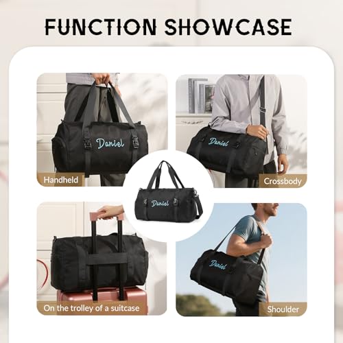 Personalized Travel Duffel Bag, Large Waterproof Sports Weekender, Custom Name Gym Bag (Black) 7