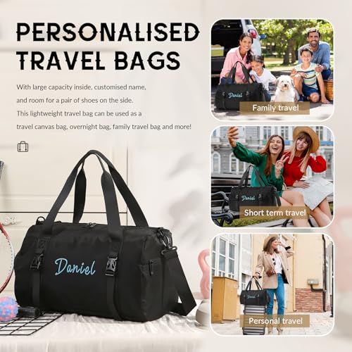 HOT ! Personalized Travel Duffel Bag, Large Waterproof Sports Weekender, Custom Name Gym Bag (Black)