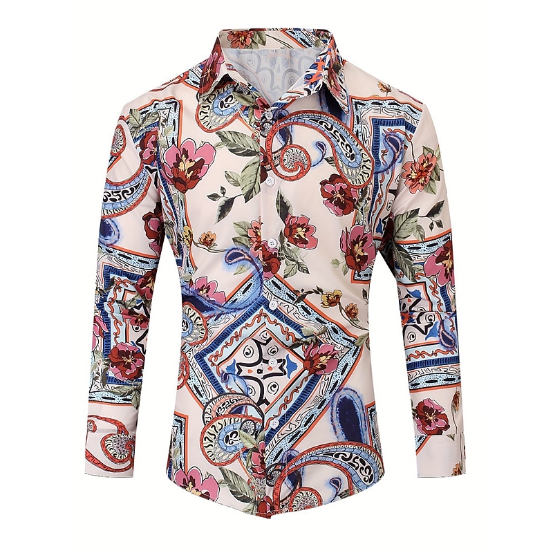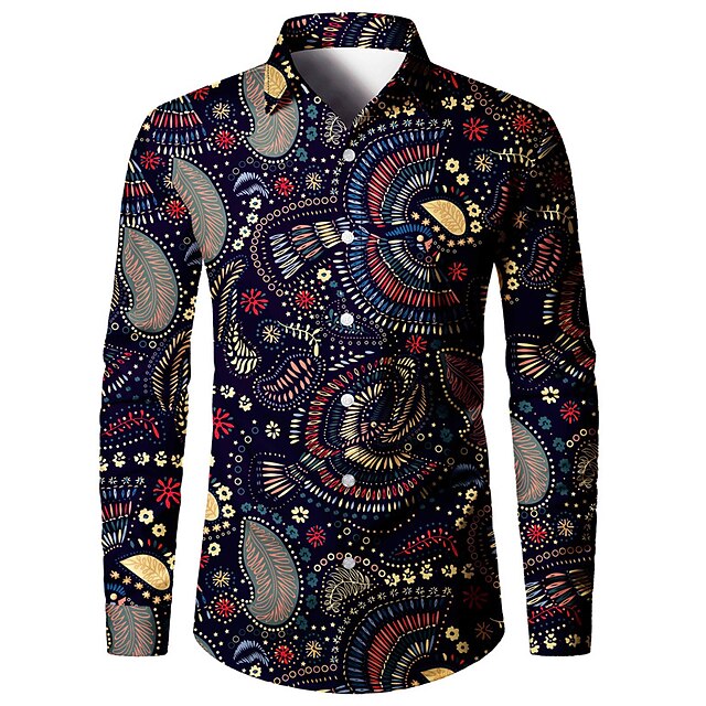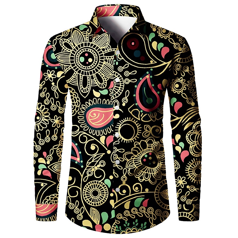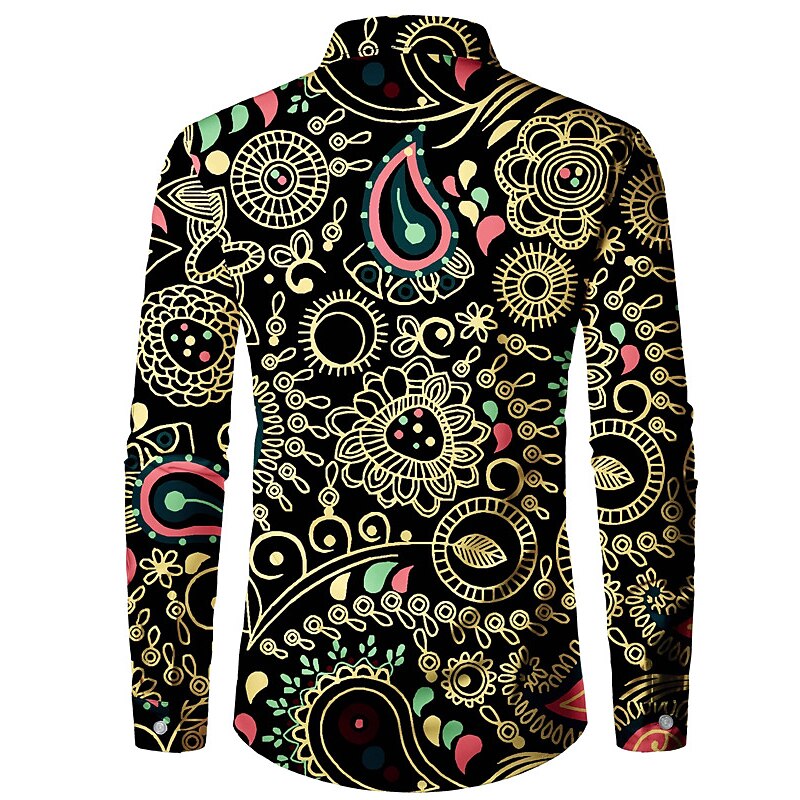 Highlights [Fabric] : Crafted from a premium 4-way stretch fabric, this men's shirt offers micro-elasticity and breathability, ensuring comfort for all-day wear. The material likely includes a blend of cotton or polyester, promising a soft feel and easy maintenance, ideal for the fall and winter seasons. [Fit] : The shirt presents a regular fit tailored for contemporary style, providing a structured look that complements the modern man's wardrobe. With long sleeves and a classic turndown neckline, it maintains a sophisticated appearance suitable for various occasions. [Design Highlights] : Featuring a vibrant paisley-inspired print in hues of gold, red, and blue set against a dark background, this shirt captures attention with its dynamic design. The button-down front and classic collar add a touch of elegance, while the intricate design enhances its appeal for style-conscious individuals. [Occasions] : Versatile in nature, this shirt is perfect for daily wear and going out. Whether attending a casual gathering or a semi-formal event, its bold, boho-inspired aesthetic makes it an excellent choice for fashion-forward individuals seeking to make a statement. [Size Range] : Available in a wide range of sizes from S to 5XL, this shirt is designed to accommodate various body types, ensuring an ideal fit for adults seeking comfort and style in their everyday attire.