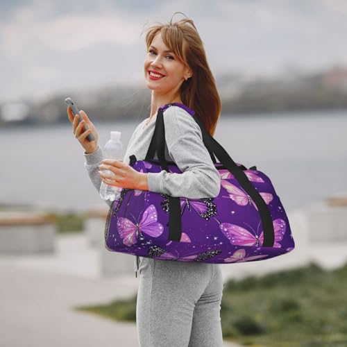 Purple Butterflies Duffle Bag Foldable Travel Tote Bag Carry On Large Weekender Overnight Bags Waterproof Gym Bag For Women Men 7