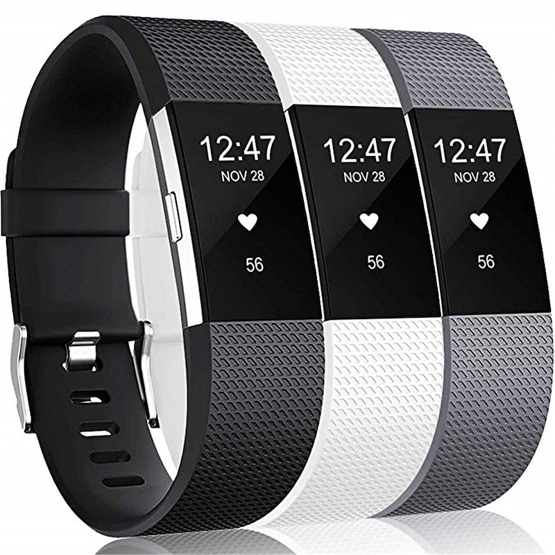 HOT ! 3 Pack Bands Compatible with Fitbit Charge 2, Classic & Special Edition Silicone Fitness Sport Replacement Bands for Fitbit Charge 2, Women Men