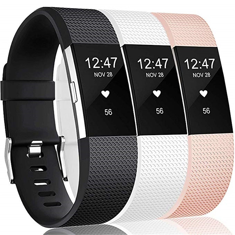 3 Pack Bands Compatible with Fitbit Charge 2, Classic & Special Edition Silicone Fitness Sport Replacement Bands for Fitbit Charge 2, Women Men 12
