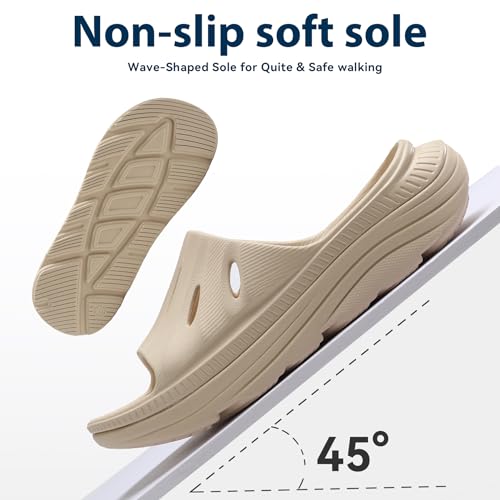 • 【Relieve Foot &Leg Fatigue】:The womens shoes for plantar fasciitis with arch structure design,recovery sandals and slides has a certain arc at the arch to effectively and comfortably support your feet,correct and relax your feet,relieve foot pain and arch pressure,and make you not tired of standing for a long time.This sandals women relieve foot problems such as plantar fasciitis relief.