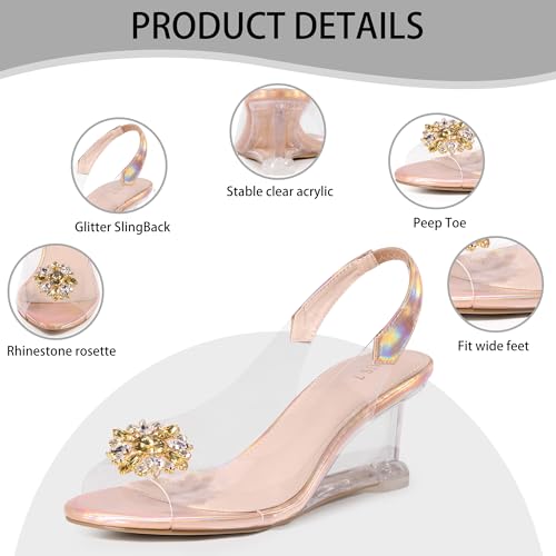 • [ Good for Various Occasion ]: These clear wedges heels sandals with a rhinestone will let you shining in the crowd. Can match with your cocktail dress for a glamorous party look