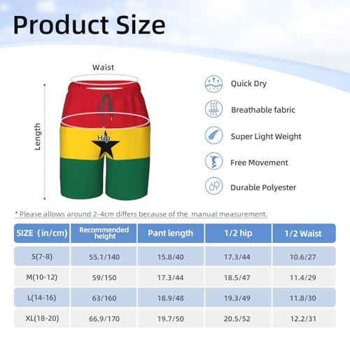More information about Flag of Ghana Youth Beach Pants, Soft and Breathable, with Drawstring Waist, Suitable for Sports and Leisure.