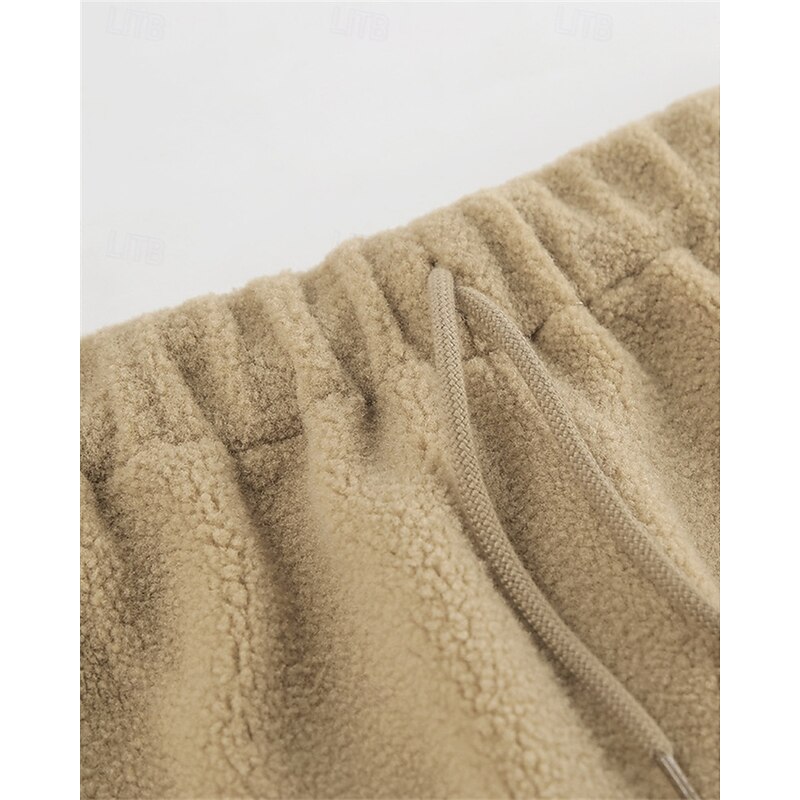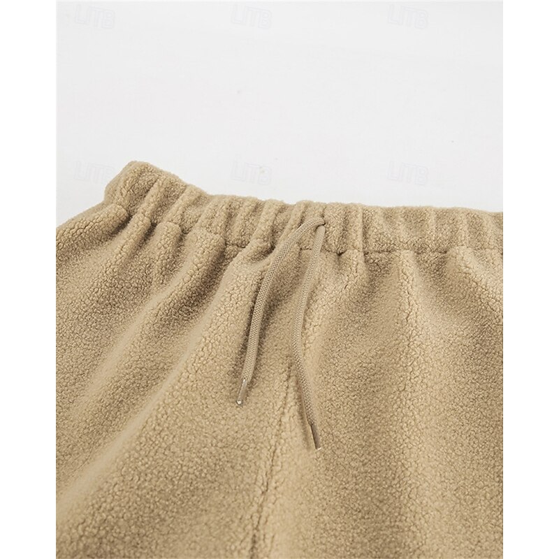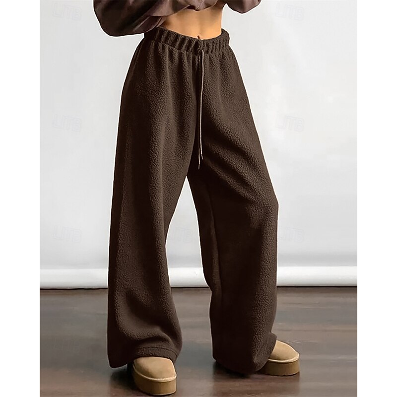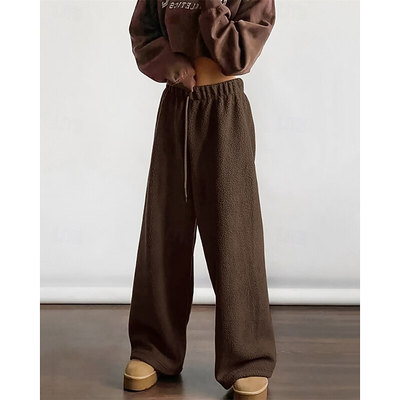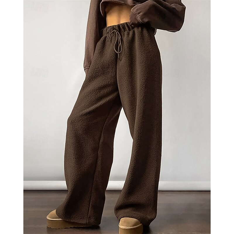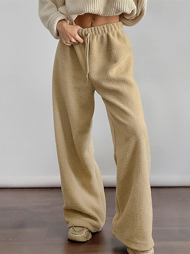 More information about Women's Fleece Pants Pants Trousers Straight Fashion Streetwear Full Length High Waist Plain Drawstring Elastic Waist Breathability Comfortable Micro-elastic Street Daily Wear Going out White Brown
