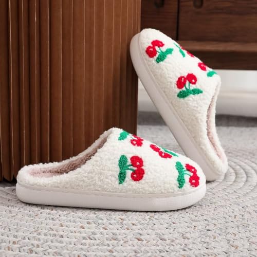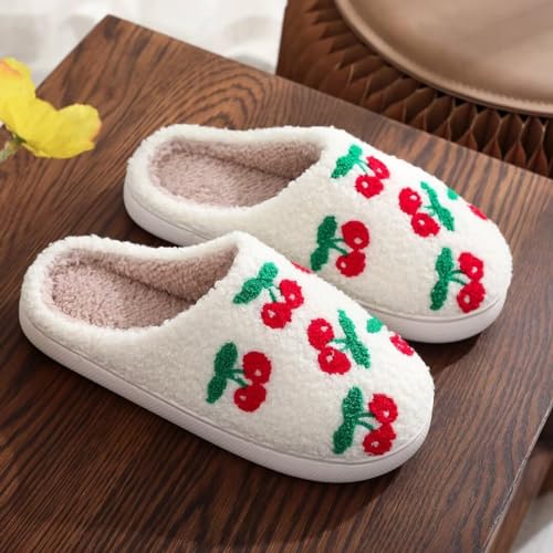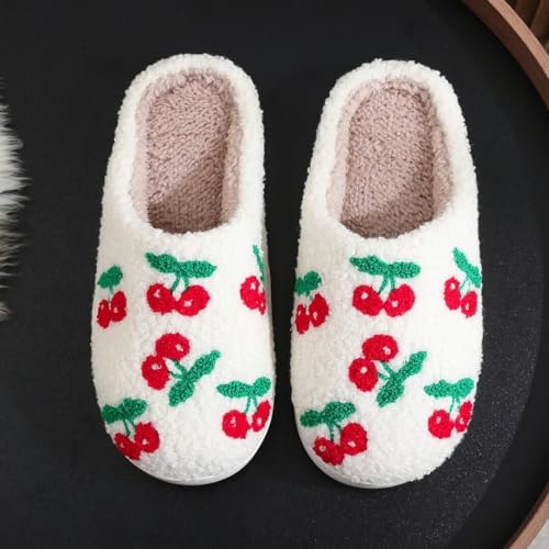 HOT ! Funny Fuzzy Slippers for Women Cozy Embroidered Retro Comfy Warm Soft Slippers Slip-on House Bedroom Cotton Slippers for Her Couples Mother's Day Valentines Gifts