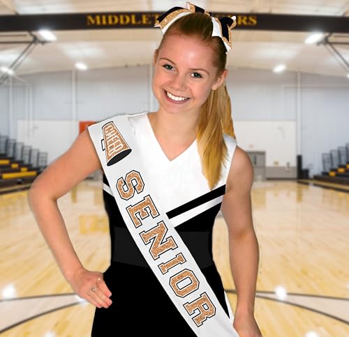 • QUALITY BEYOND YOUR EXPECTATIONS: This Gold, Black, and White cheer senior 2026 sash is made from the most premium quality materials. This supple sash comes in a variety of colorways that coordinates perfectly with most cheerleader uniforms and gear.