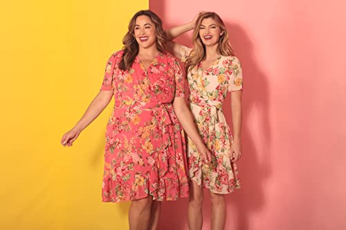 London Times Women's Faux Wrap Dress with Ruffle Skirt Occasion Shower Office Career 1