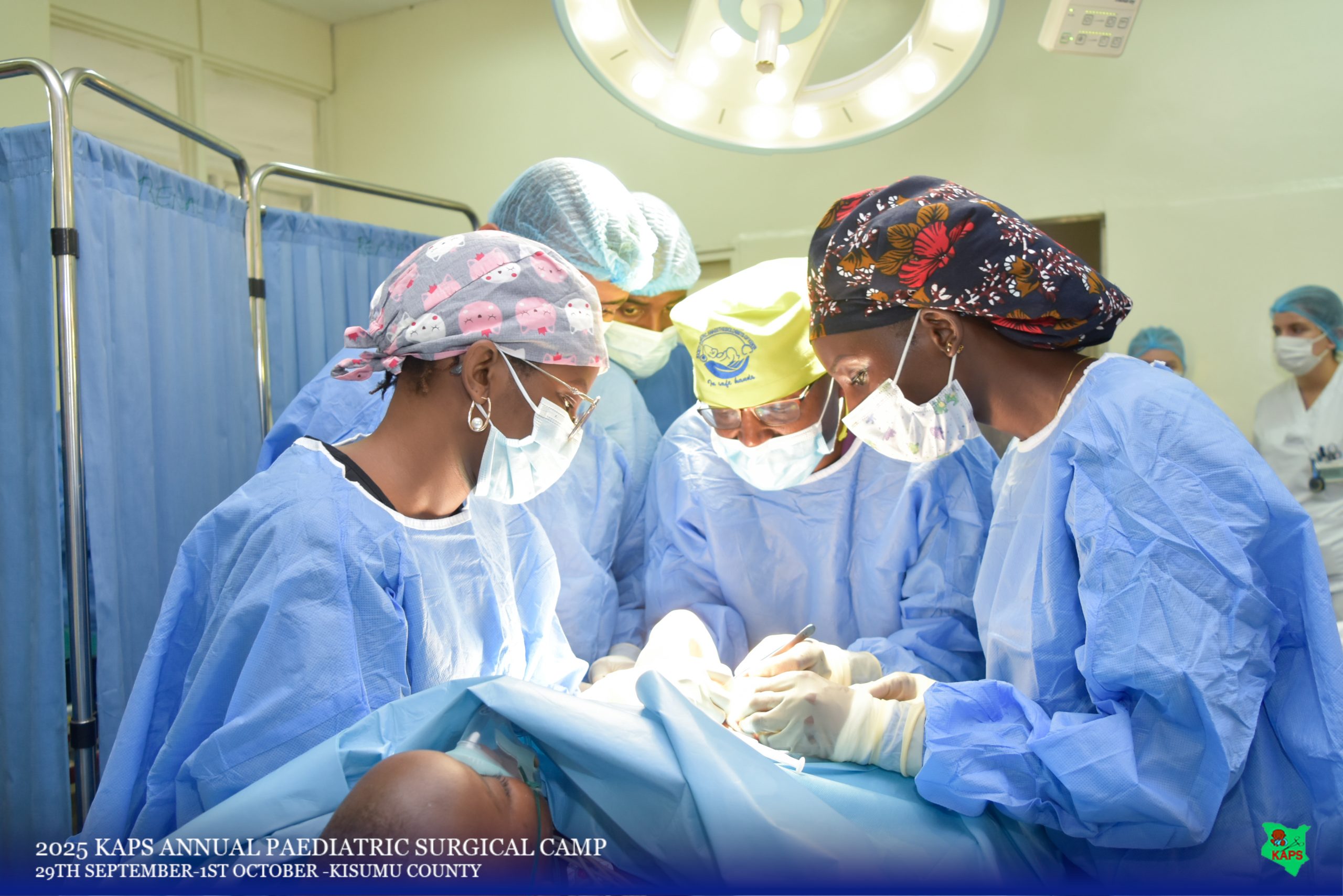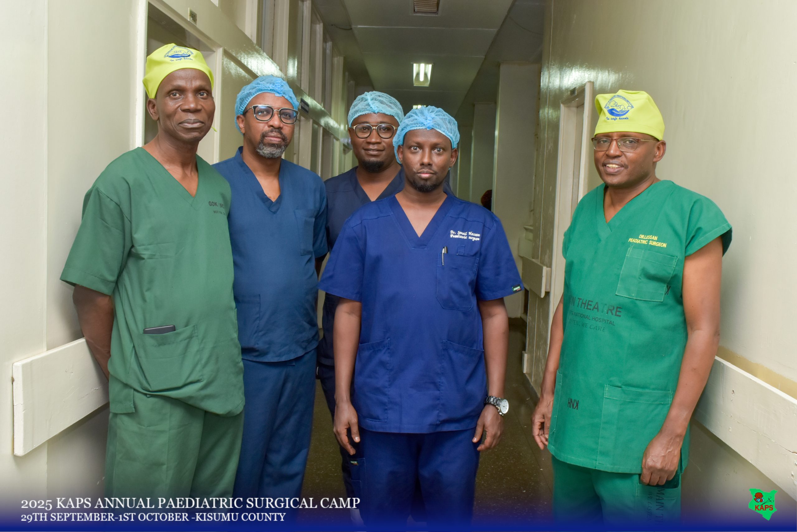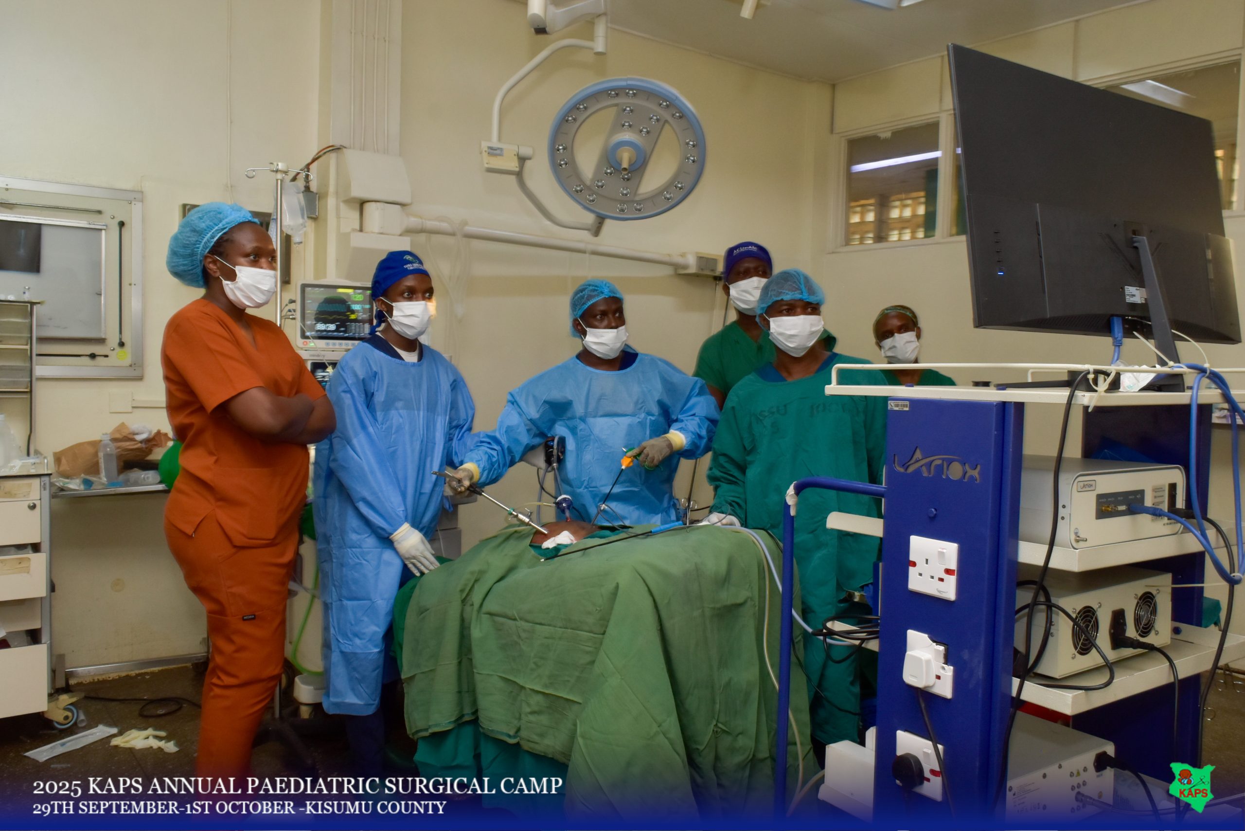 The Kenya Association of Pediatric Surgeons (KAPS) held a successful pediatric surgical camp from September 29 to October 1, 2025, delivering free surgical care to 103 children in Western Kenya. Hosted by Jaramogi Oginga Odinga Teaching and Referral Hospital (JOOTRH) and Aga Khan University Hospital (AKUH) Kisumu, the camp involved 76 medical professionalsfrom various Kenyan institutions, including 20 pediatric surgeons, 8 pediatric surgery residents, a 24-member nursing team comprised of pediatric theater nurses and theater technicians, and a 24-member anesthesia team comprised of anesthesiologists, anesthesiology fellows, residents, and theater assistants . A total of 116 procedures addressed 108 diagnoses, primarily inguinal hernias and umbilical pathologies, alongside complex cases like omphalocele and redo surgeries.