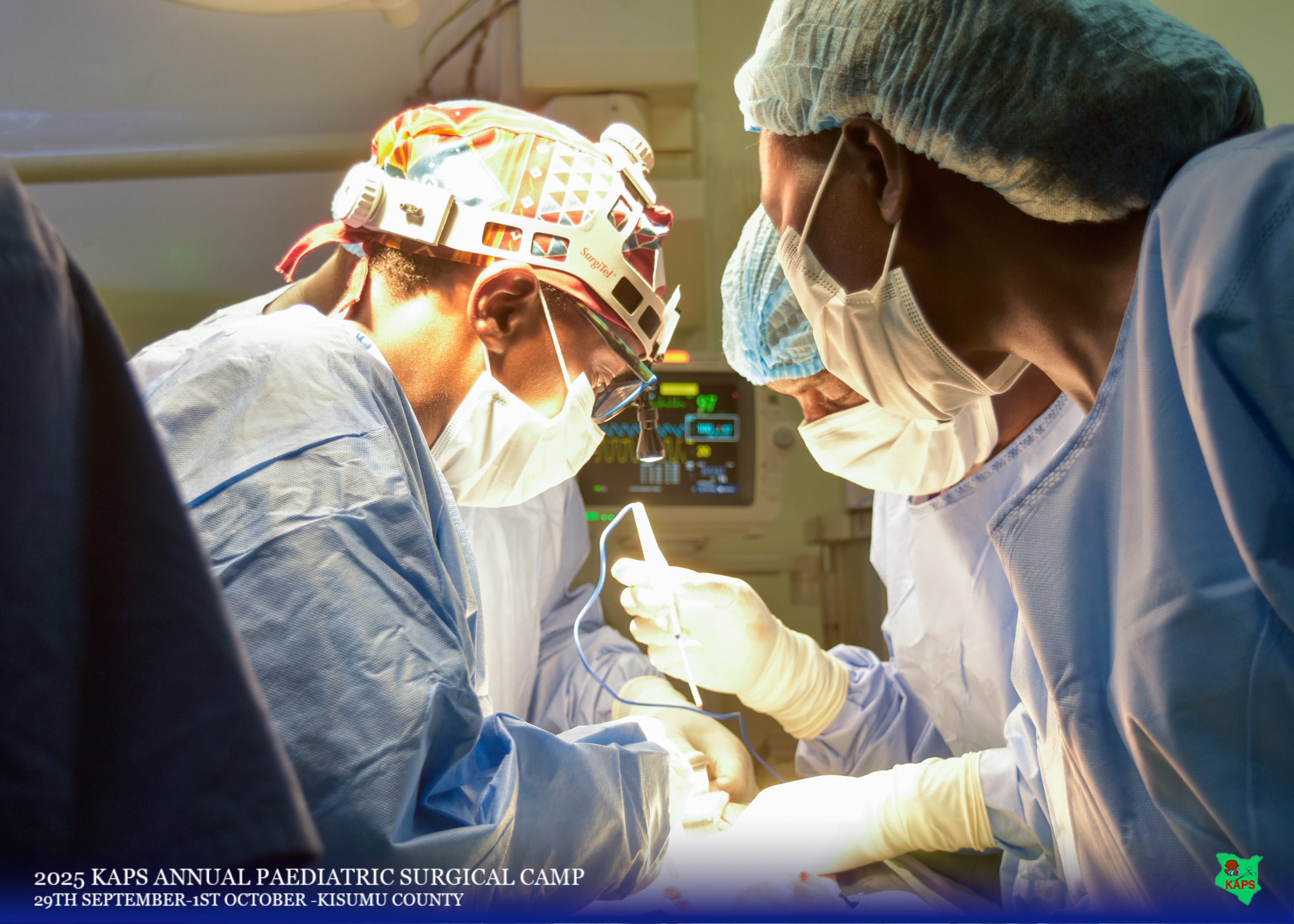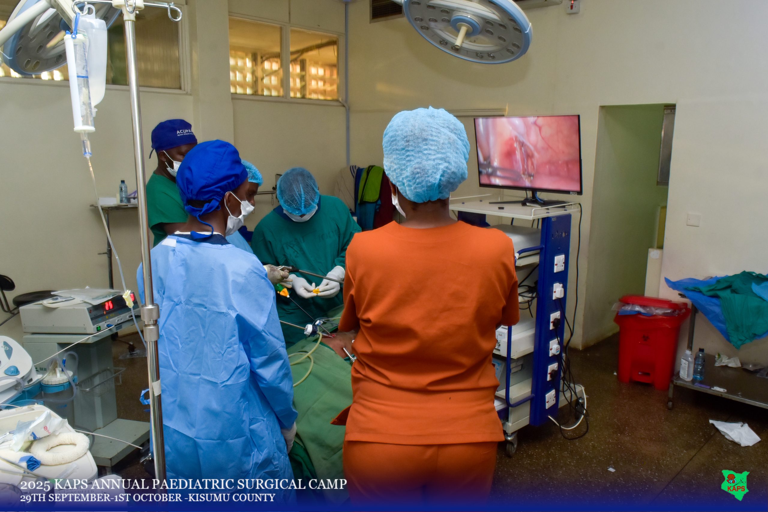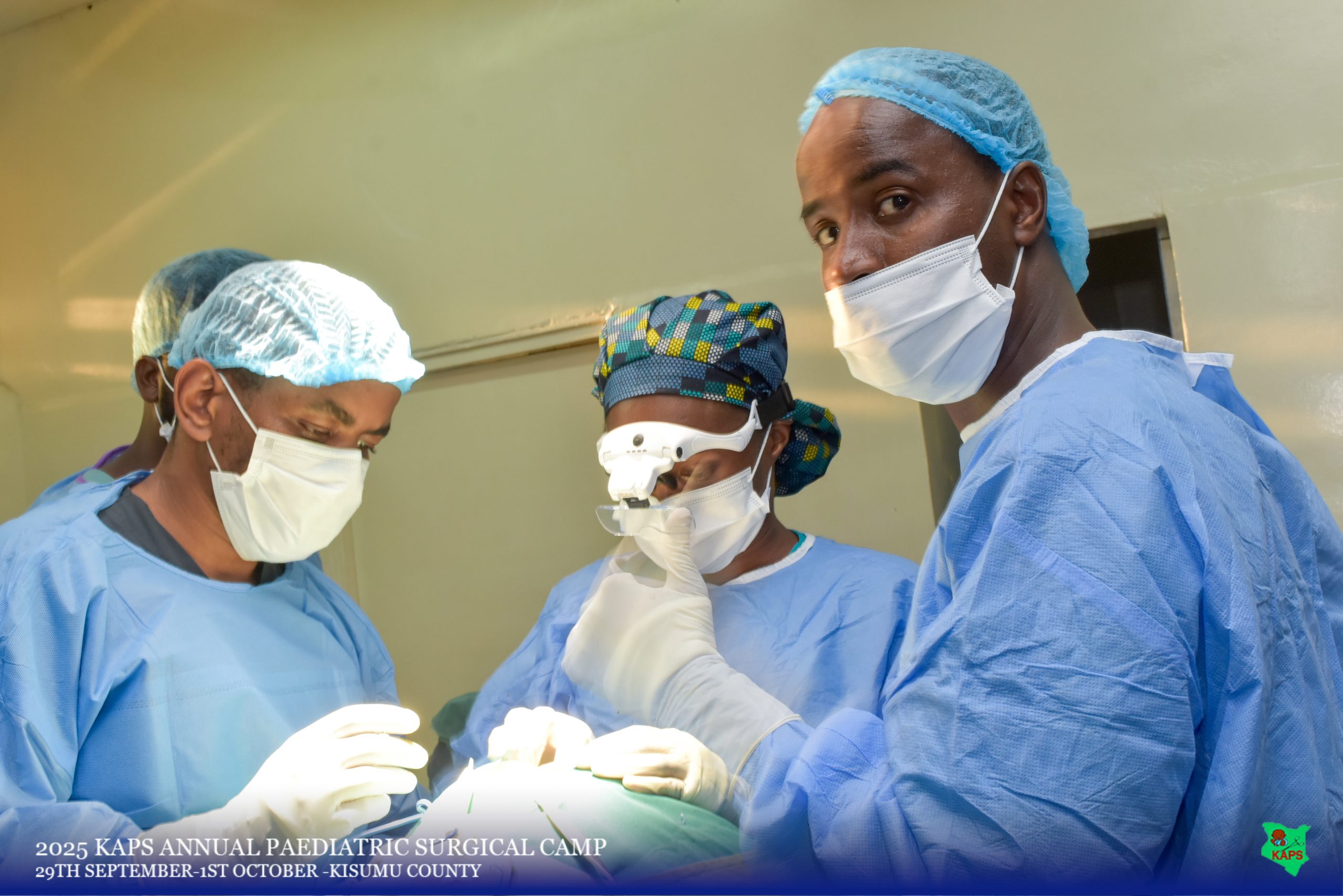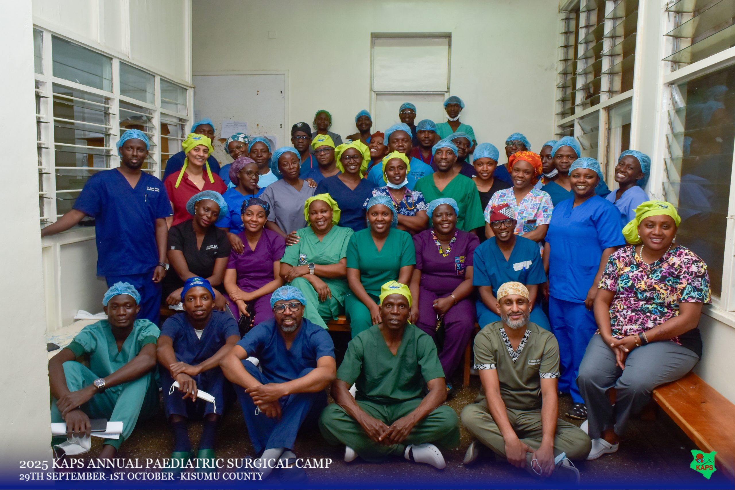 The Kenya Association of Pediatric Surgeons (KAPS) held a successful pediatric surgical camp from September 29 to October 1, 2025, delivering free surgical care to 103 children in Western Kenya. Hosted by Jaramogi Oginga Odinga Teaching and Referral Hospital (JOOTRH) and Aga Khan University Hospital (AKUH) Kisumu, the camp involved 76 medical professionalsfrom various Kenyan institutions, including 20 pediatric surgeons, 8 pediatric surgery residents, a 24-member nursing team comprised of pediatric theater nurses and theater technicians, and a 24-member anesthesia team comprised of anesthesiologists, anesthesiology fellows, residents, and theater assistants . A total of 116 procedures addressed 108 diagnoses, primarily inguinal hernias and umbilical pathologies, alongside complex cases like omphalocele and redo surgeries.